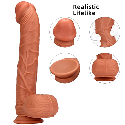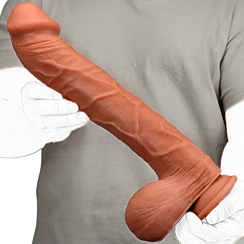 Golden Großer Penis Dildo, 34cm XXL Realistischer Riesendildo mit mit Hoden Venen und Starkem Saugnapf für Freihändiges Spielen Dildo G-Punkt Anal Simulieren Sex spielzeug für die Frau Extrem