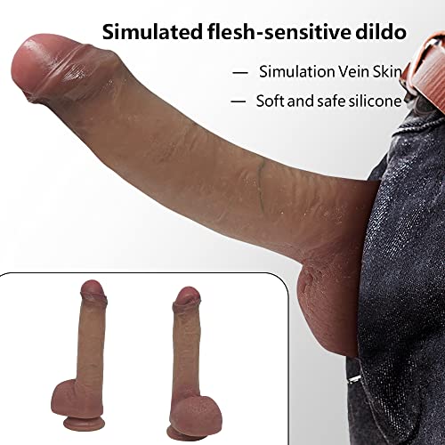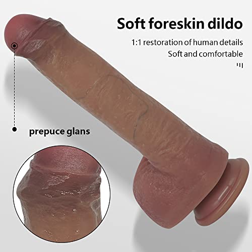 Jixaxe Realistischer Dildo mit starkem Saugnapf, Flüssiges Silikon Vorhaut Dildo Penis Sex Spielzeug Real Venen und Prallen Hoden Analdildo Sex Toy für Anfänger Frauen Männer Paare, 23 * 4,2CM