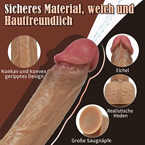 【Hochwertiger Dildo】 Dieses Sex Spielzeug für die frau hochwertiges Silikon, das Material ist sicher und geruchsfrei, weich und hautfreundlich, Sie können sicher sein, es zur Verwendung in Ihren Körper einzuführen, das realistische konkav-konvexe Rippendesign an die oberfläche intensiviert die optische wirkung dieses sextoys und mobilisiert erregte stimmung