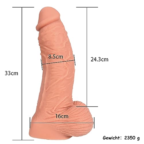 💪 Super Dickes Material:Gesamtlänge 33 cm, Einstecklänge 24,3 cm, Durchmesser 8,5 cm,Hoden Durchmesser 16 cm. Er ist sehr groß, super dick, Es ahmt die harten Muskeln einer Erektion nach und der starke und flexible Schaft wird Sie zugießen.